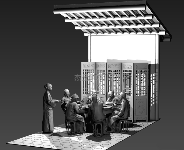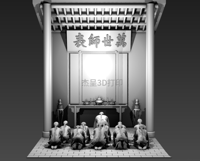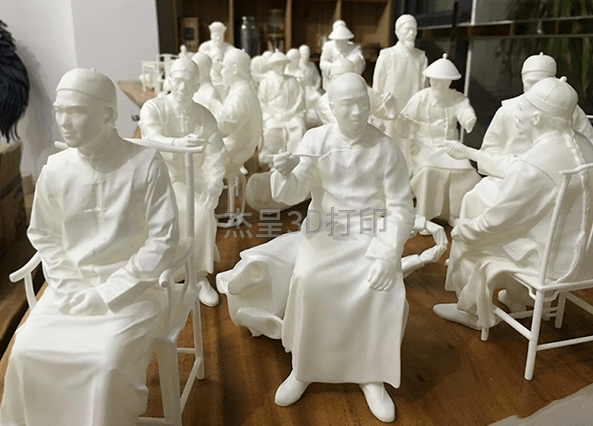 利用SLA光固化3D打印技术,团队成功将人物和建筑模型完整地打印出来,并进行了精细的上色。此外,除了《山长聘任》微缩模型,余楠老师还结合3D技术制作了多尊雕塑,包括《左宗棠》、《英雄侠女》、《左宗棠与陶澍彻夜长谈》等。