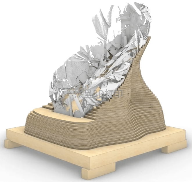 Leerform团队使用3D扫描技术获取了石英水晶的数据,并将其导入到设计软件中。在软件中,他们可以直接设计定制的展台和支架,这使得处理不规则形状的物体变得更加简单。使用3D打印和数控机加工技术,Leerform团队可以根据设计结果直接将木材或其他材料切割成所需形状,并将它们组装在一起。这样,他们就成功地为石英水晶制作了一个吸引人的展台,并提供了适合它外观的支架和板条箱。