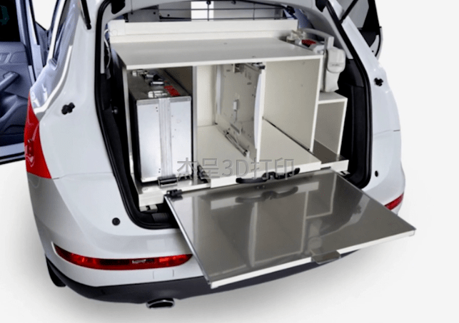 我们将以一个汽车改装案例为例,来探讨3D扫描技术如何将普通汽车后备箱改造成应急车辆专用的“设备储藏室”。该案例的定制需求来自于一个紧急救援团队,他们需要一辆车来携带必要的急救设备,以便在医生出现急诊时能够快速响应,并在高度紧张的工作环境中方便地取用这些设备。为了满足这一需求,设计团队将汽车后备箱作为重点改造部位,需要在车厢内制作一条不锈钢滑轨,并在轨道上面定制多个重型抽屉和容器。